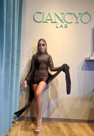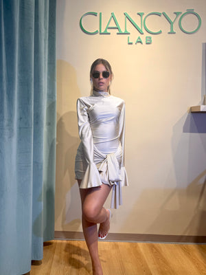 Questo abito corto valorizza la tua silhouette con un tocco di stile e versatilità, perfetto per chi ama osare con eleganza.