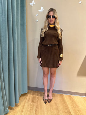 Disponibile esclusivamente nel colore marrone, una tonalità calda e raffinata, perfetta per creare outfit autunnali eleganti e contemporanei.