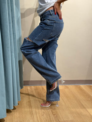 Realizzati in denim resistente, presentano cinque tasche classiche e dettagli di strappi strategici sulle ginocchia, e non solo, per un tocco contemporaneo e grintoso.