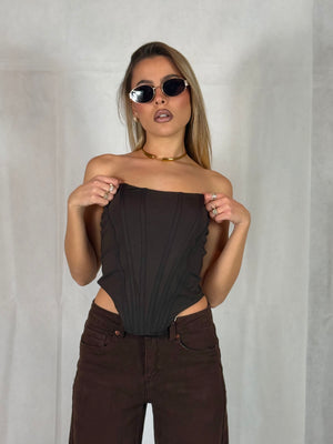 Corsetto dal carattere deciso, perfetto per aggiungere un tocco grintoso a qualsiasi outfit.