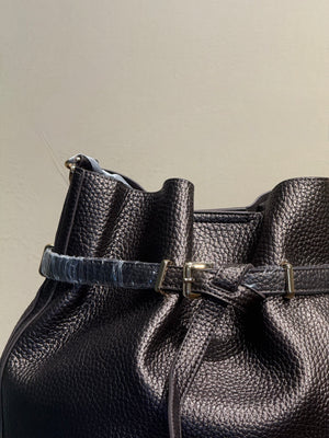 Dotata di un manico e di una tracolla regolabile per un comfort versatile, presenta una cinturina nella parte alta che assicura la chiusura e la sicurezza del contenuto.