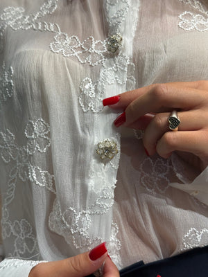 Realizzata con delicati fiori in rilievo e applicazioni sofisticate, è la camicia perfetta per chi ama distinguersi con eleganza.