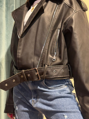 Realizzata in ecopelle di qualità, riprende il classico modello chiodo, arricchito da dettagli che ne esaltano il carattere.