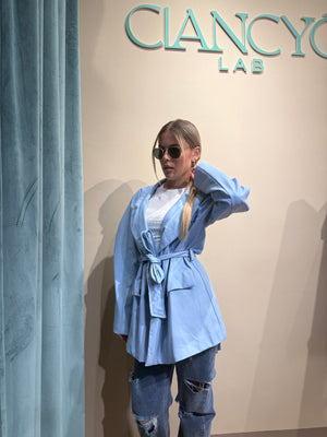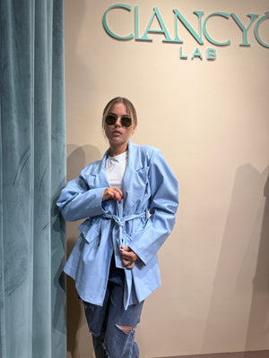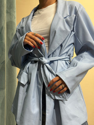 Realizzata in vernice, questa giacca si adatta perfettamente fino alla taglia 48, offrendo un design moderno ed elegante.
