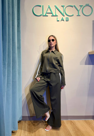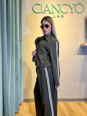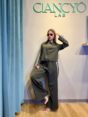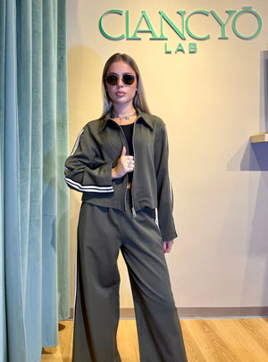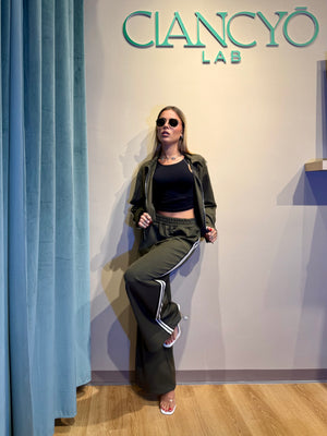Scegli il coordinato perfetto per chi ama osare: pantalone a gamba ampia e felpa con strisce laterali che catturano subito l'attenzione.