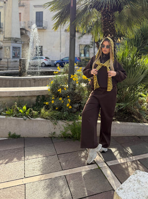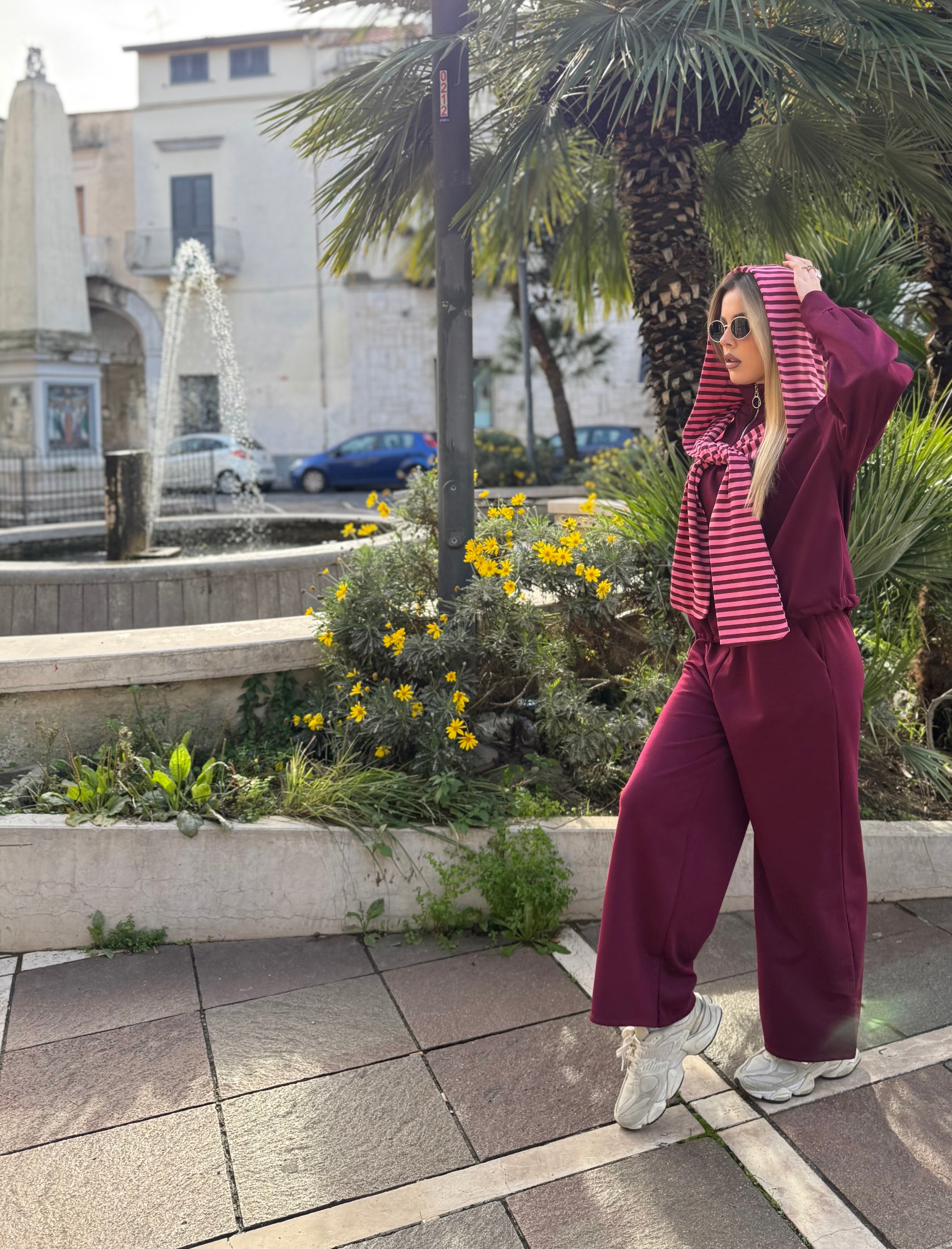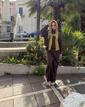 Questo coordinato tuta, ispirato alle tendenze più virali di TikTok, unisce morbidezza e stile casual in un look contemporaneo e super trendy.