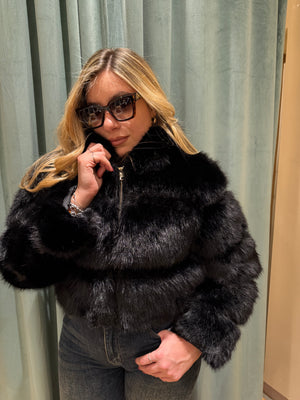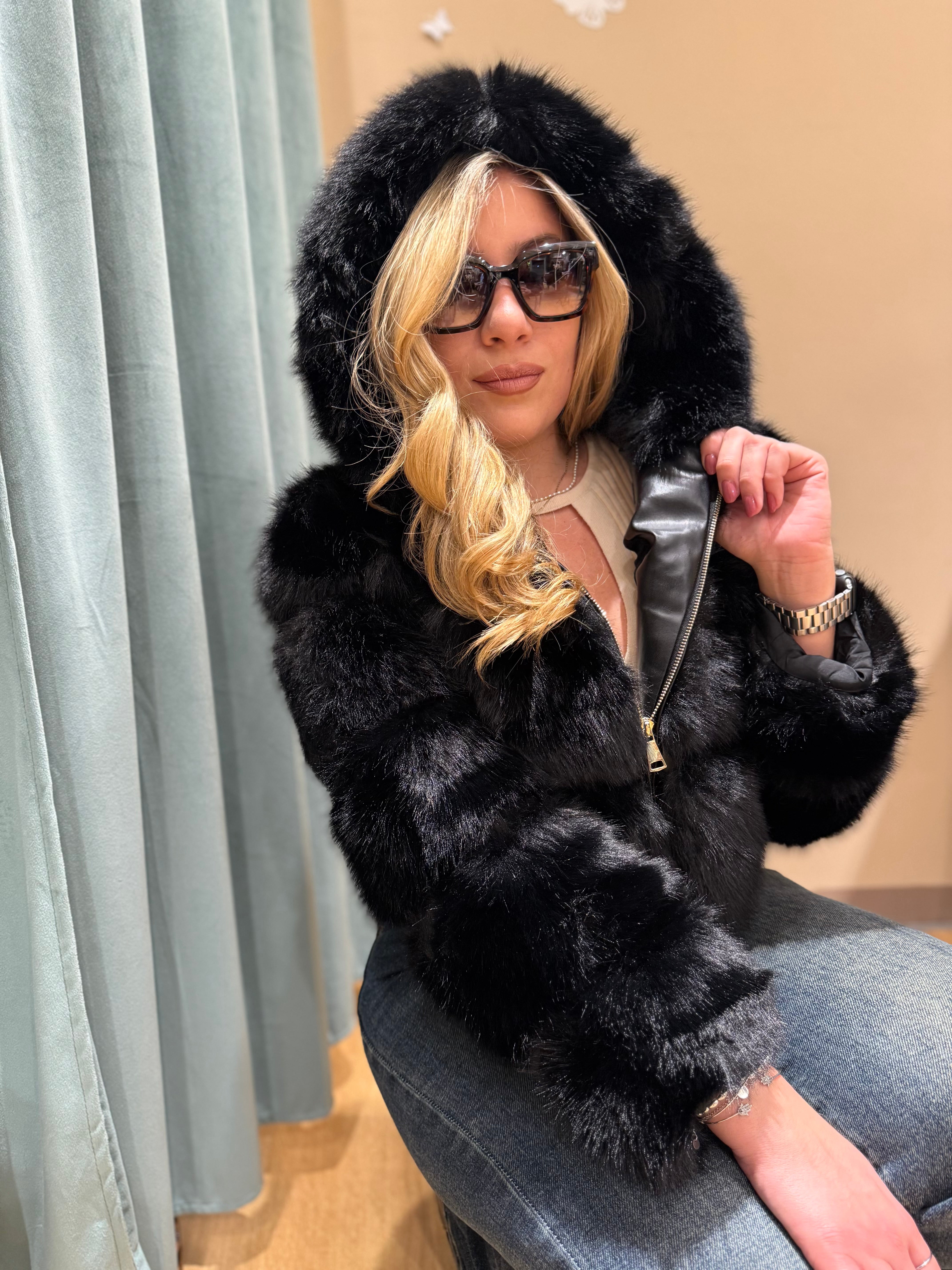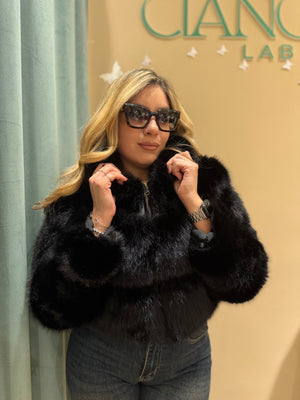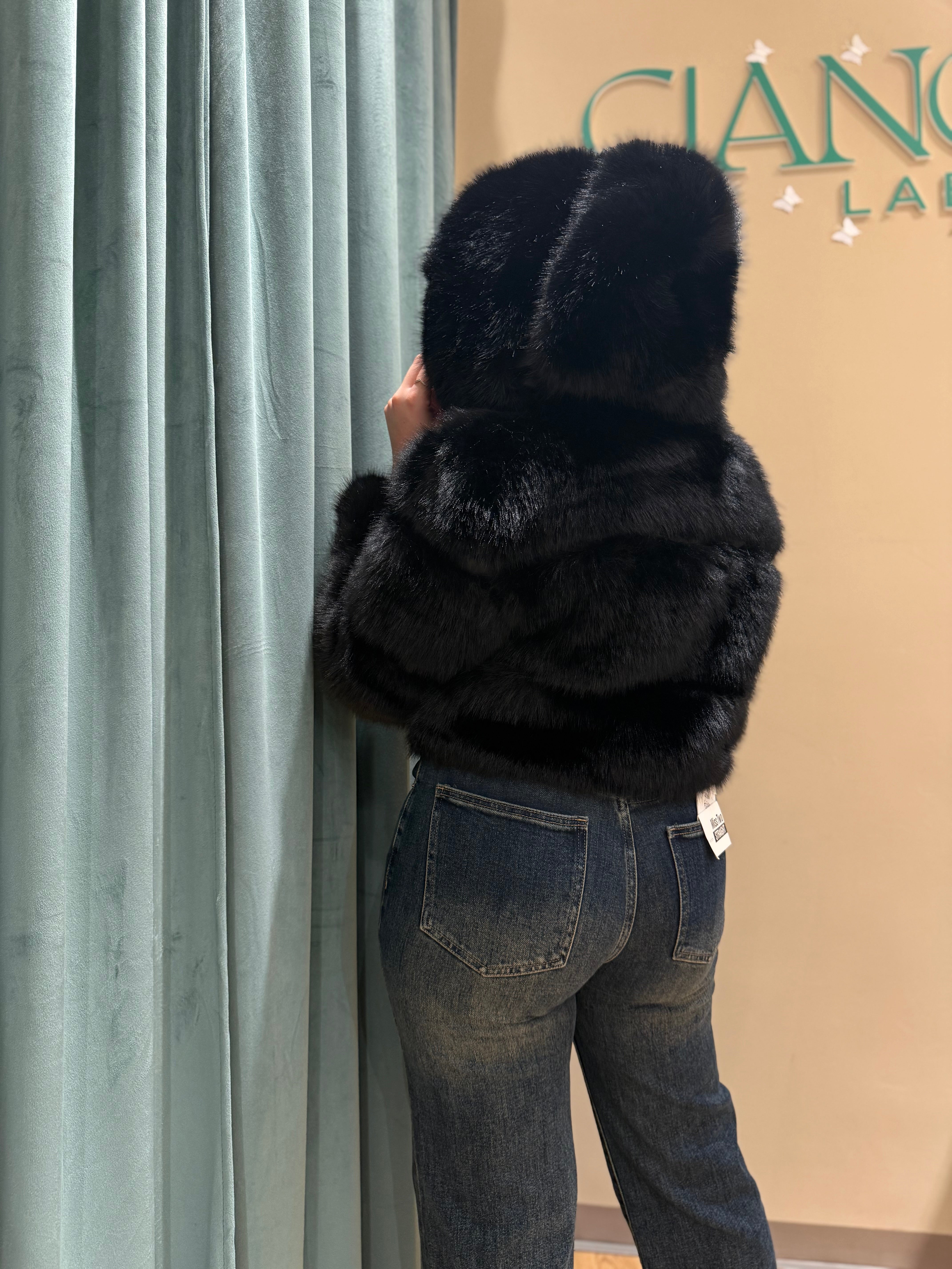 La zip frontale è robusta e scorrevole, pensata per valorizzare sia il look total-fur completamente chiuso sia lo stile più casual indossato aperto.