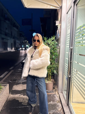 La texture soffice e l’effetto fluffy regalano immediatamente un’aria ricercata, mentre il taglio leggermente oversize assicura comfort e libertà di movimento.