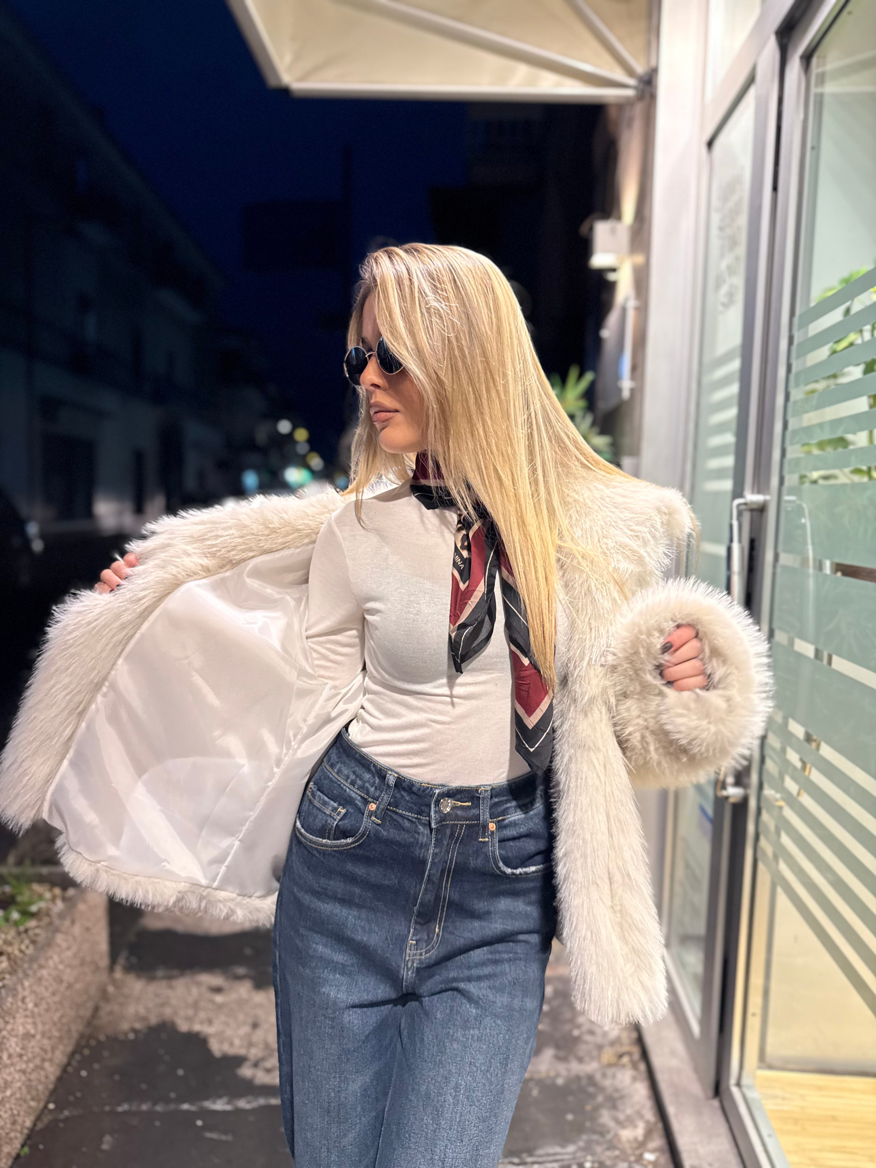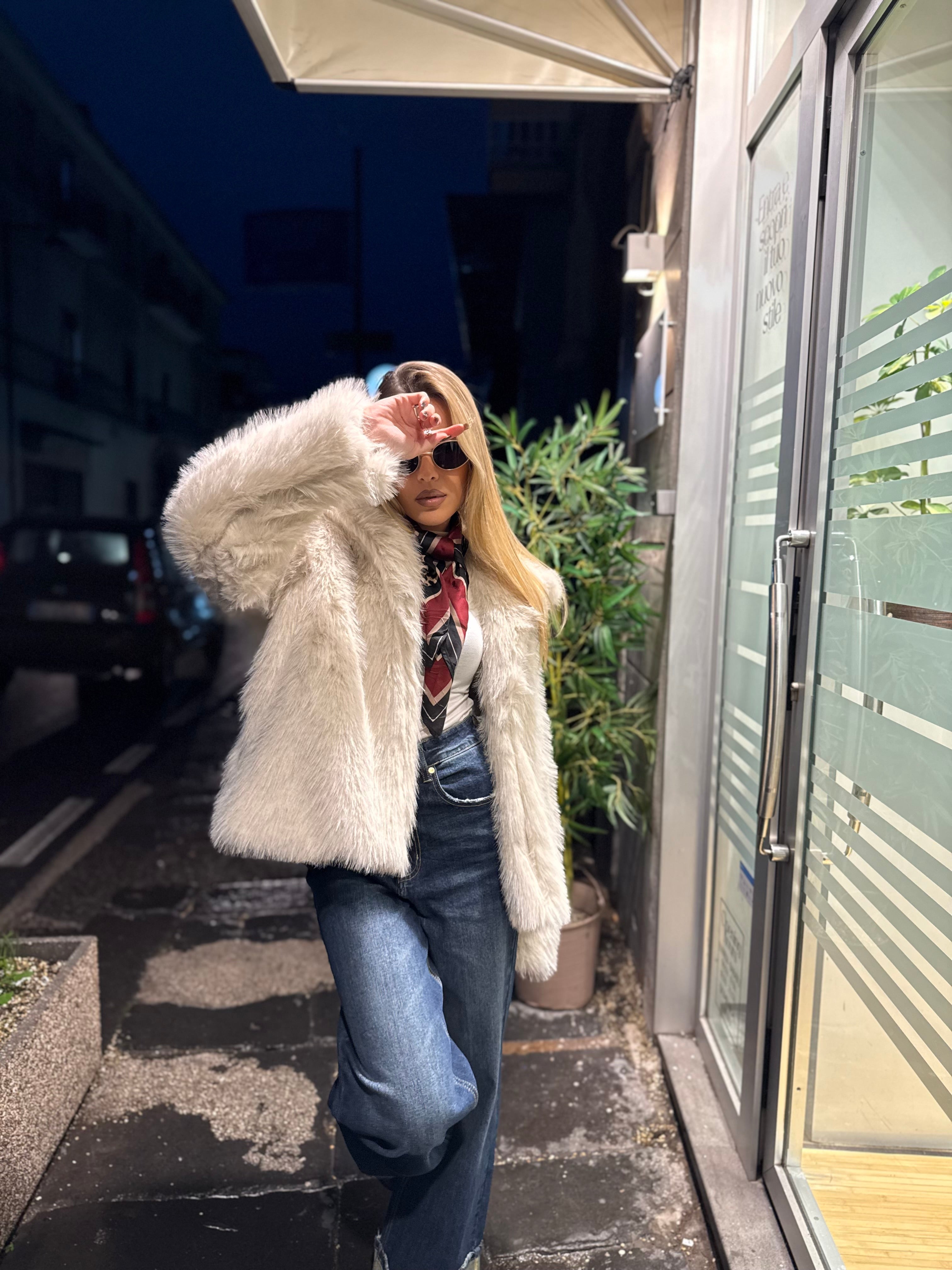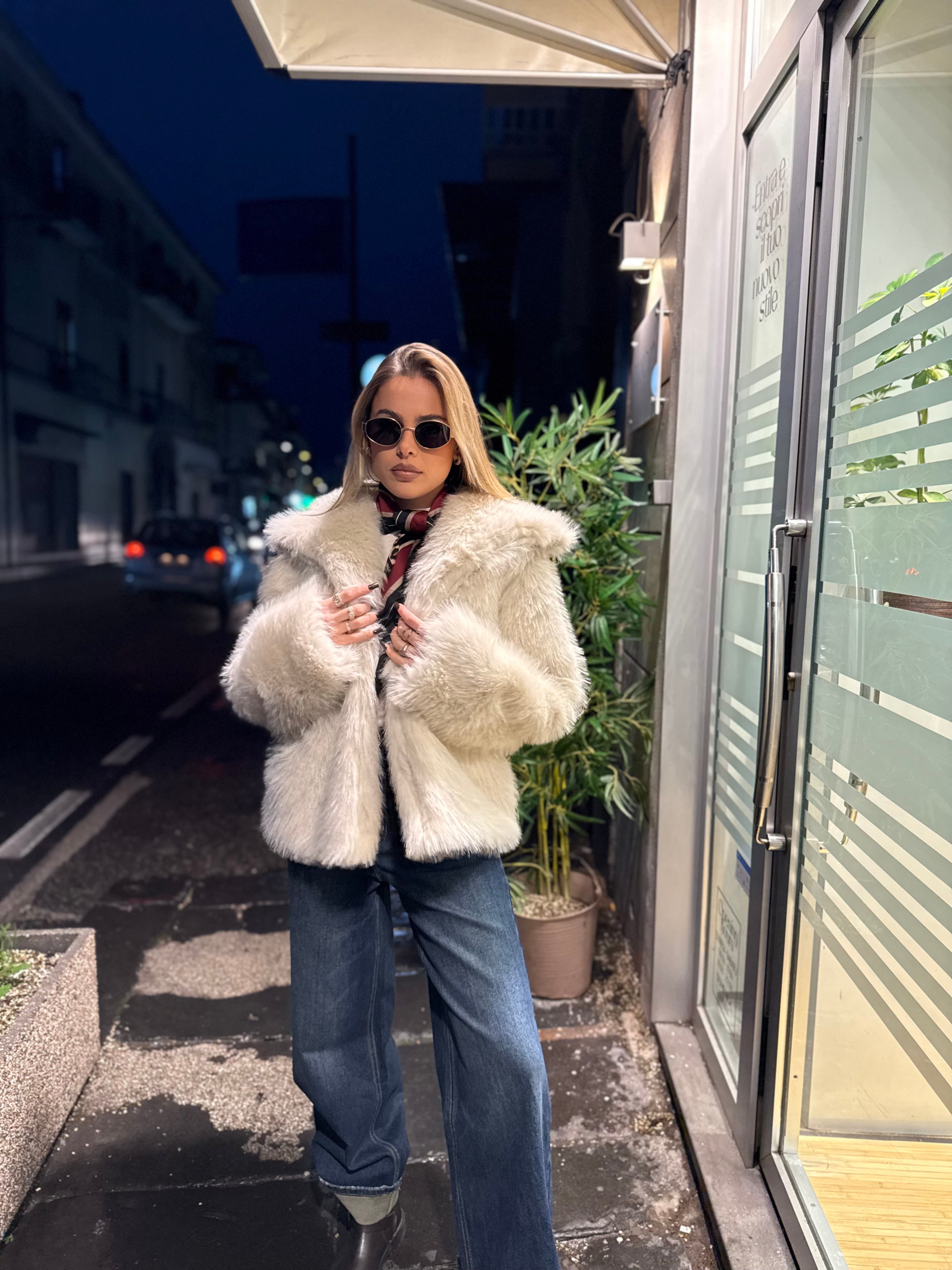 Questa pelliccia ecologica morbida e voluminosa è il capo perfetto per aggiungere un tocco di glamour ai look invernali.