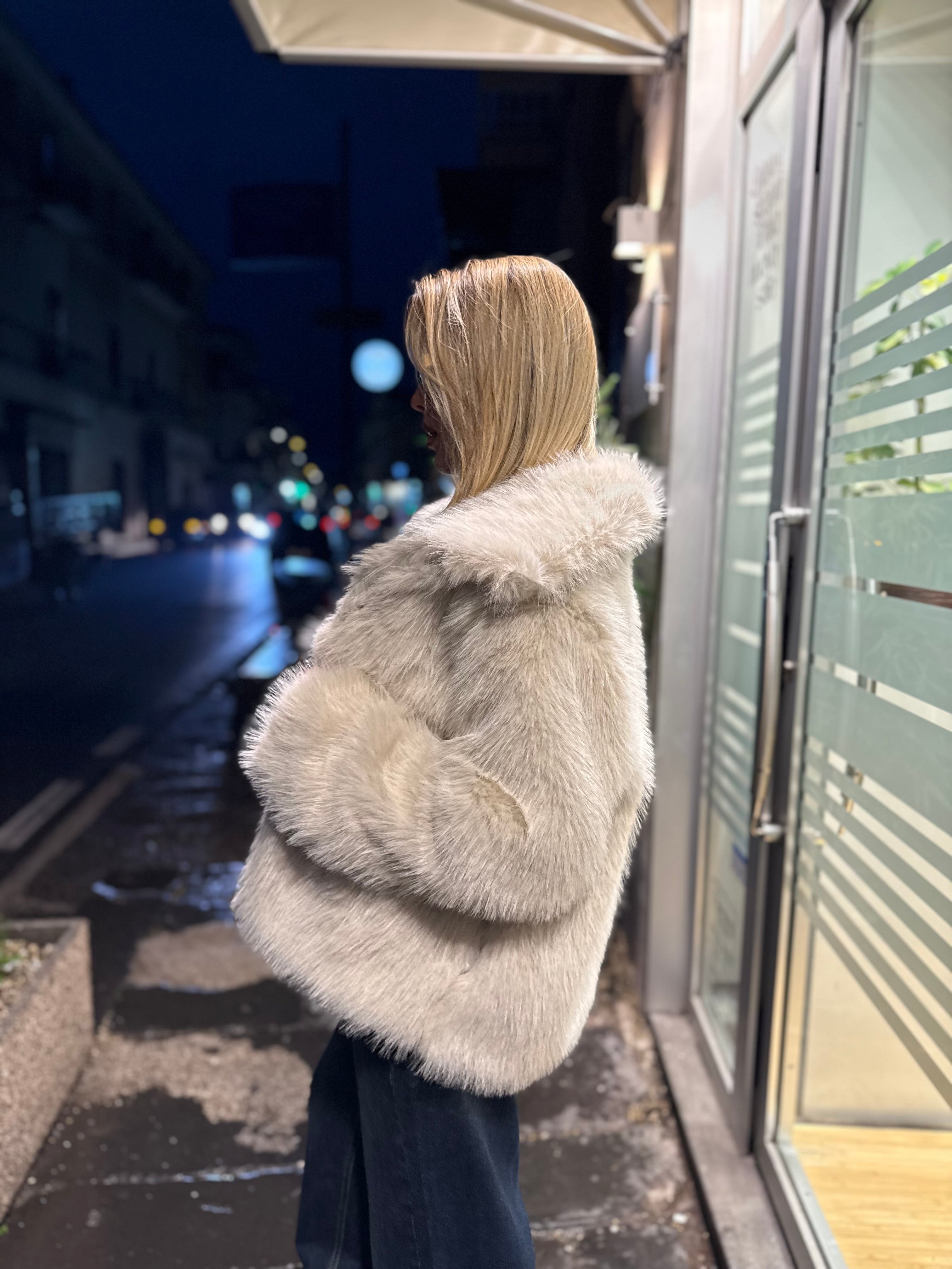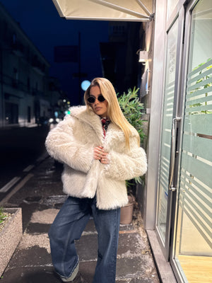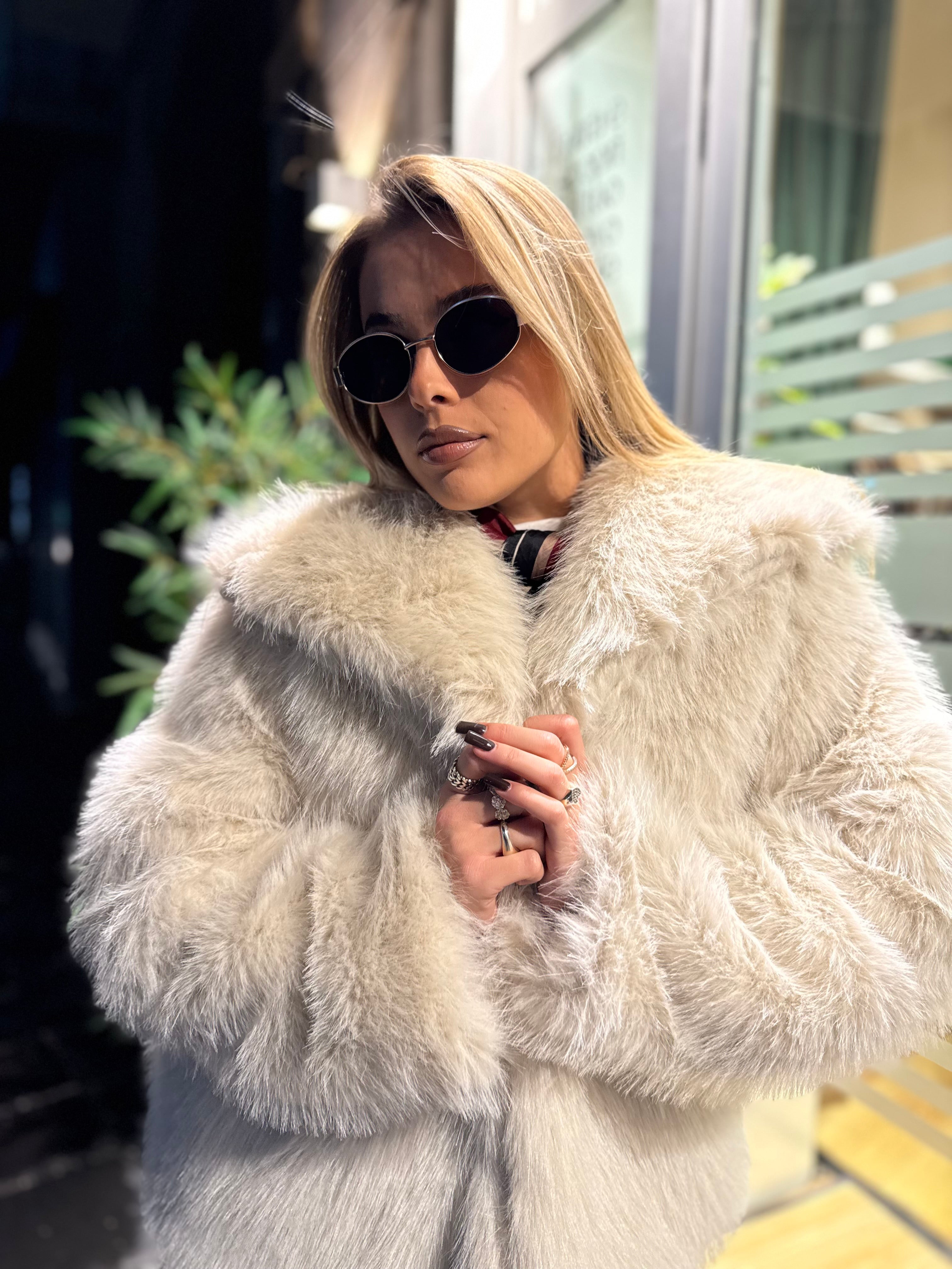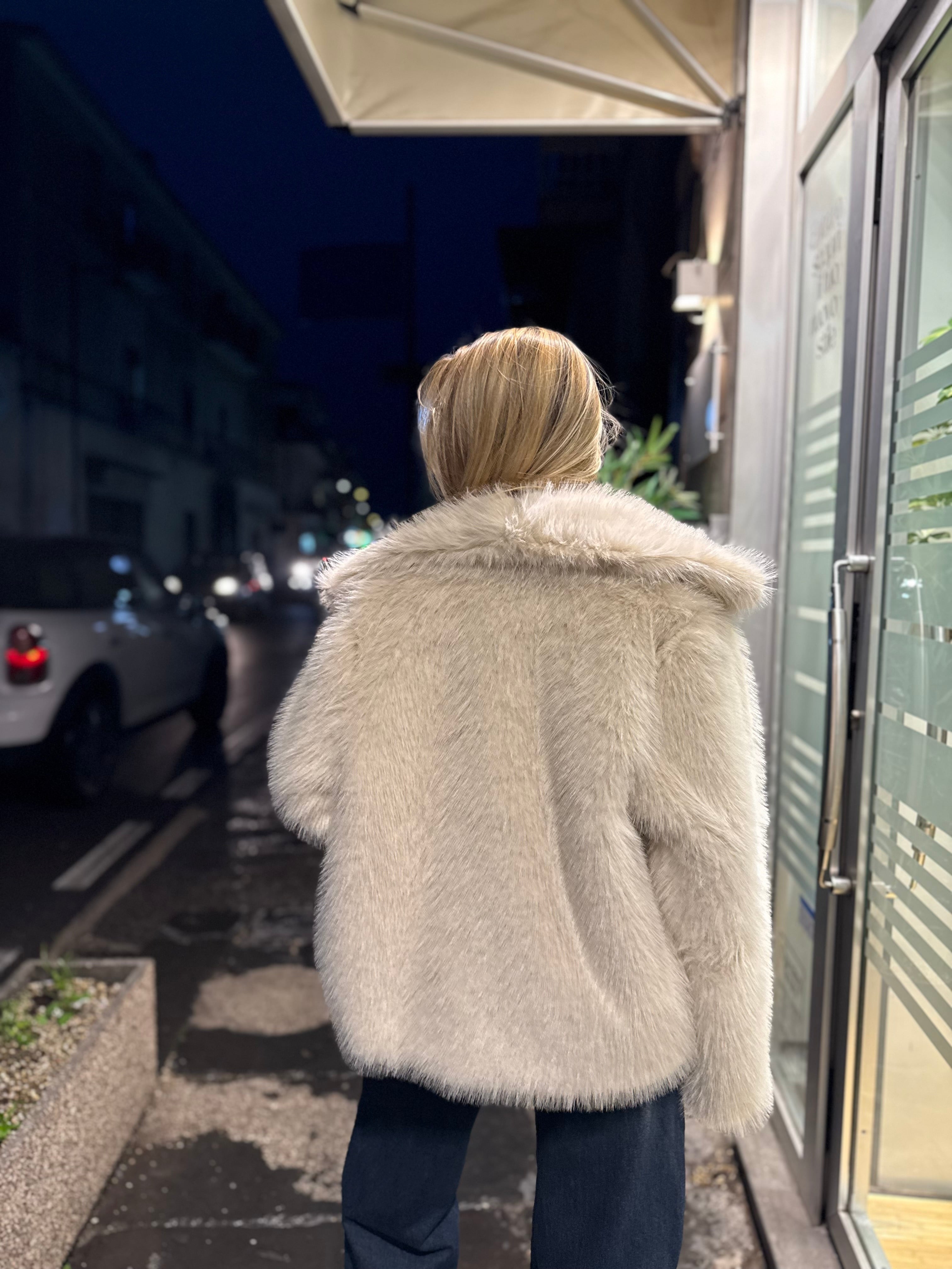 Questa pelliccia ecologica morbida e voluminosa è il capo perfetto per aggiungere un tocco di glamour ai look invernali.
