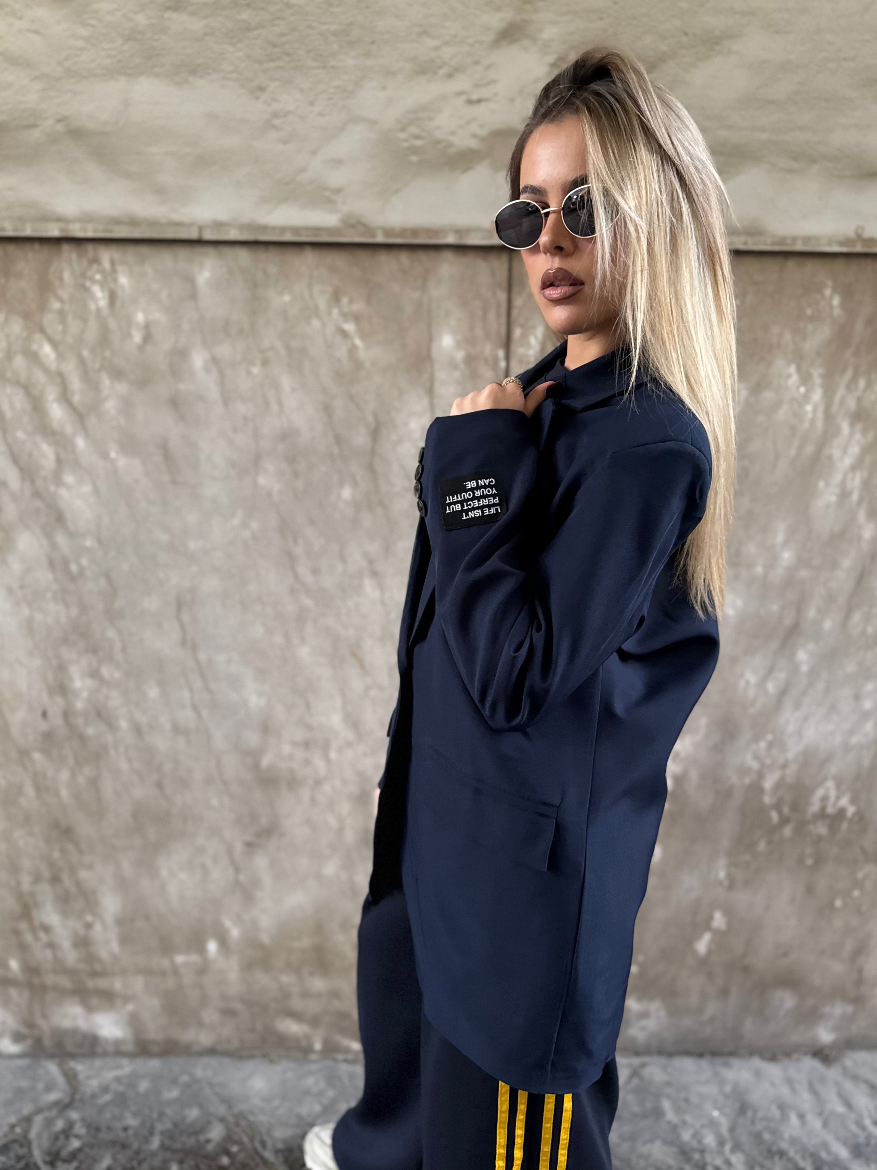 Perfetto per dare un tocco chic anche ai look più casual — noi lo abbiamo abbinato a una tuta con felpa sotto per un effetto super trendy — ma si adatta con naturalezza anche a jeans, pantaloni eleganti o gonne.