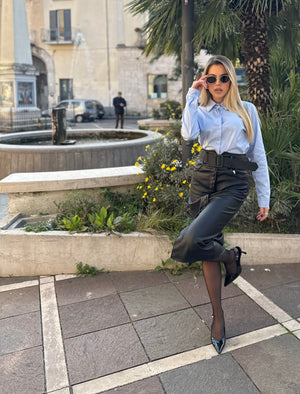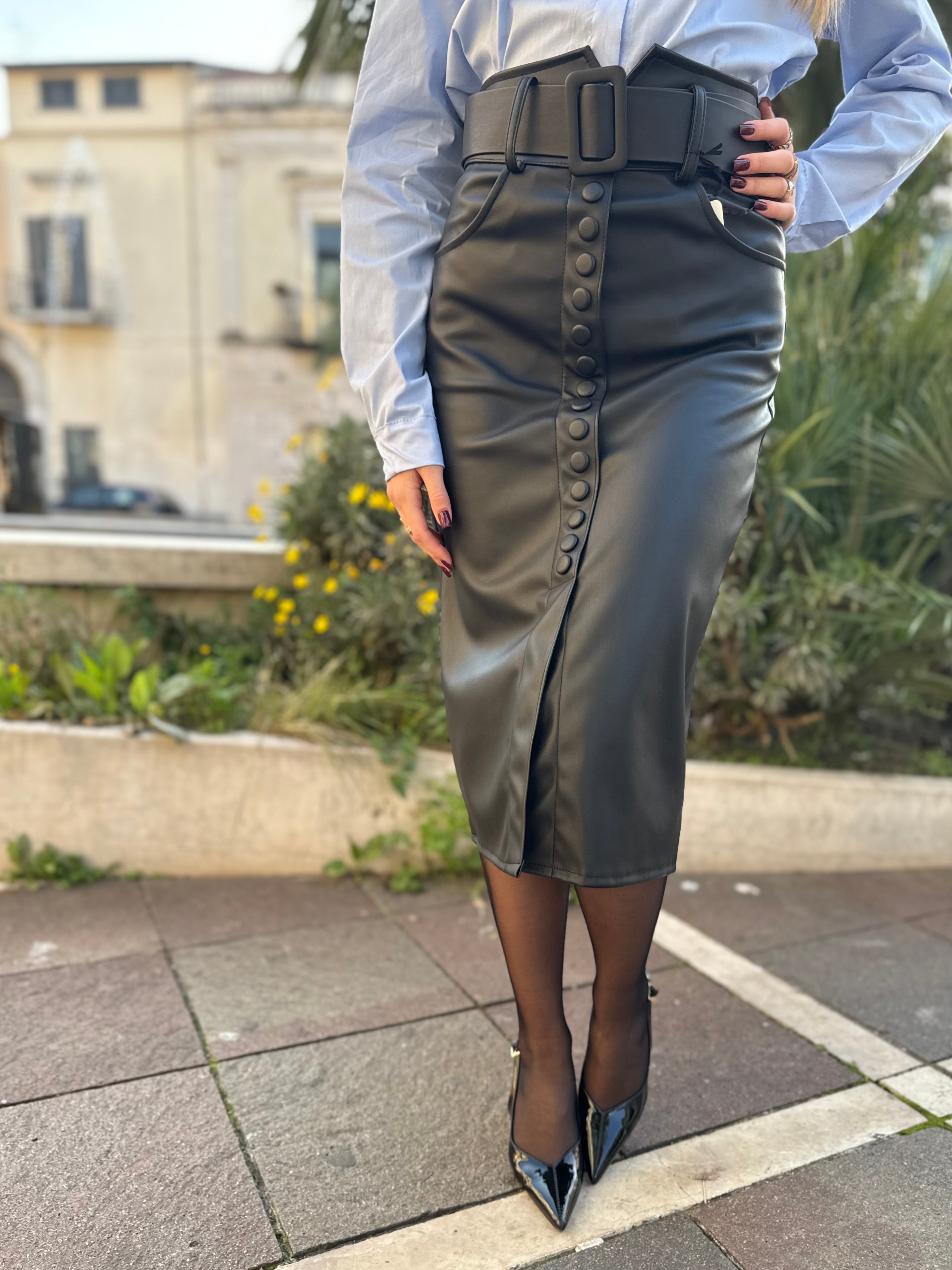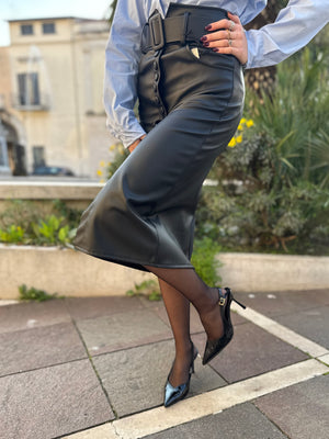 Gonna midi in ecopelle dal carattere deciso e super femminile.