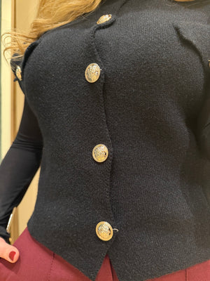 Realizzato in morbida viscosa, presenta un girocollo classico e bottoncini gioiello color argento sia sul davanti che sui taschini laterali decorativi, per un tocco luminoso ed elegante.