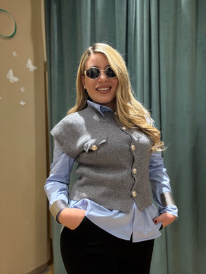 Ideale da indossare sopra una maglia sottile a manica lunga, come la nostra Sabrina, oppure con una camicia per un look più curato e femminile.