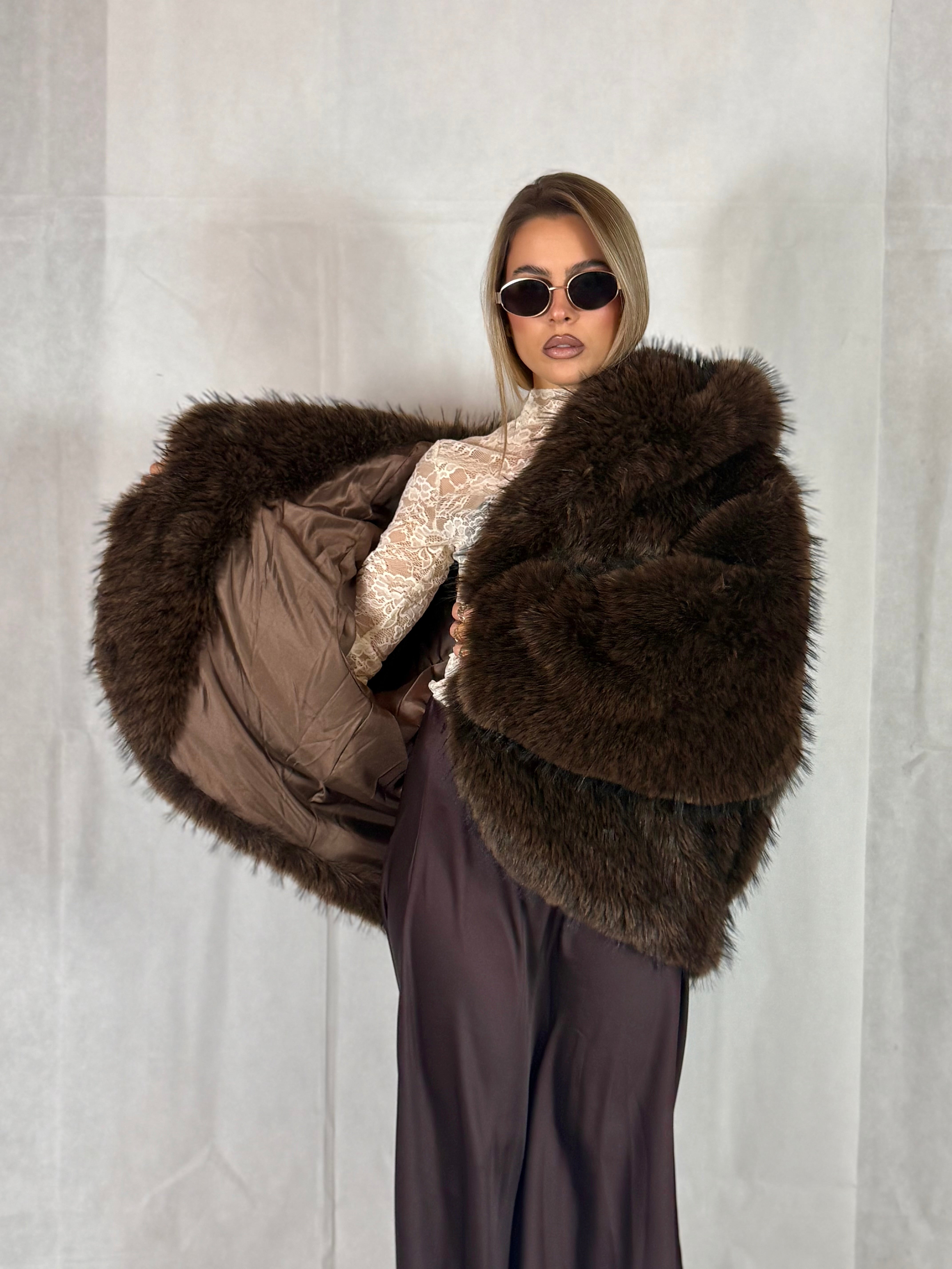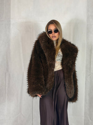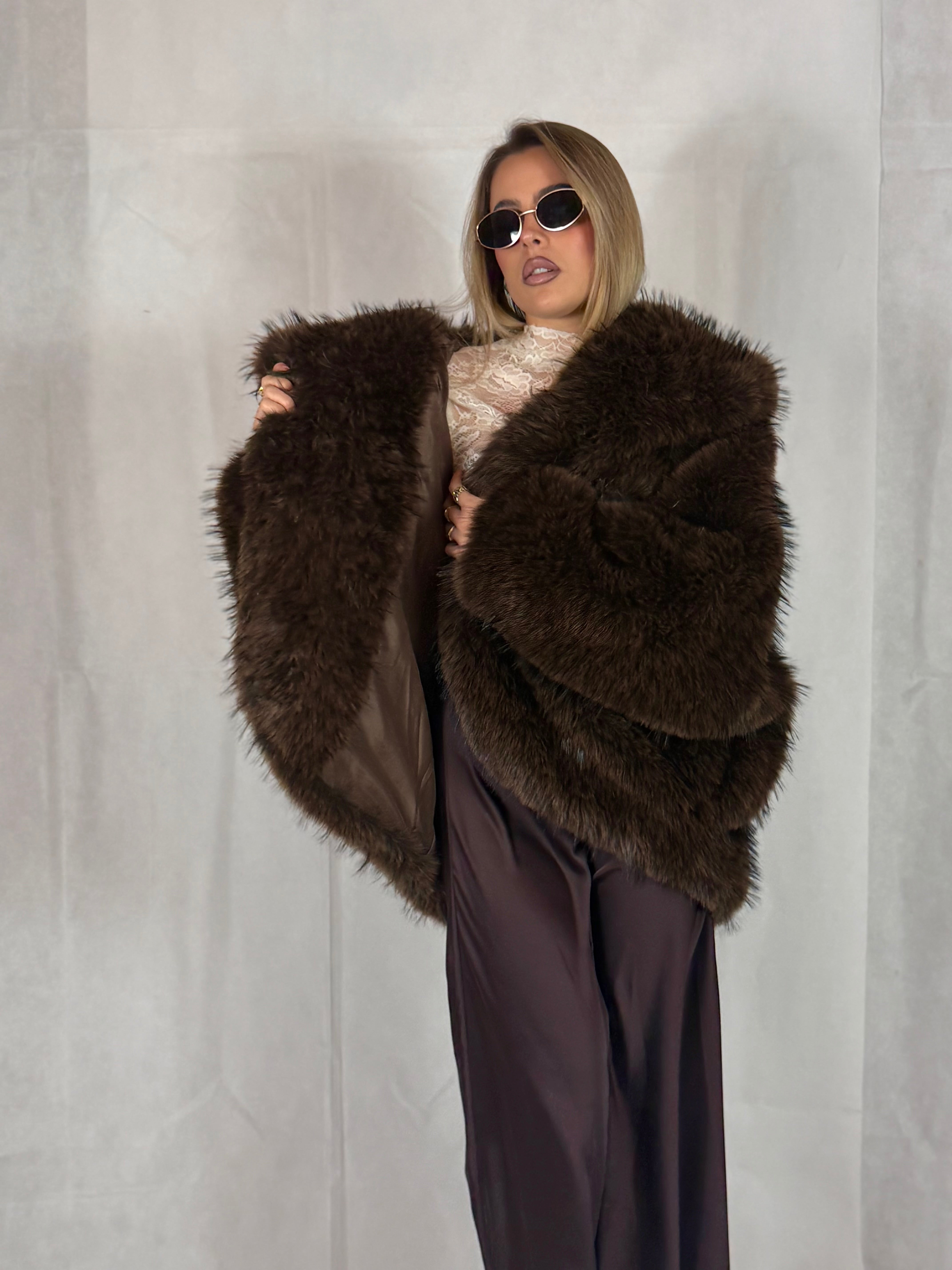 Perfetta sia sopra abiti eleganti sia su outfit più minimal e casual, questa ecofur trasforma ogni look in un vero statement di stile, portando glamour e personalità anche nelle giornate più fredde.