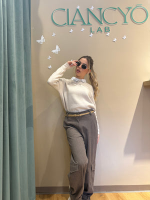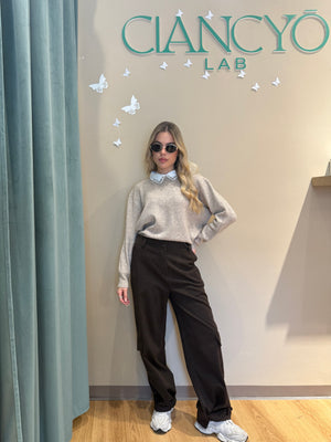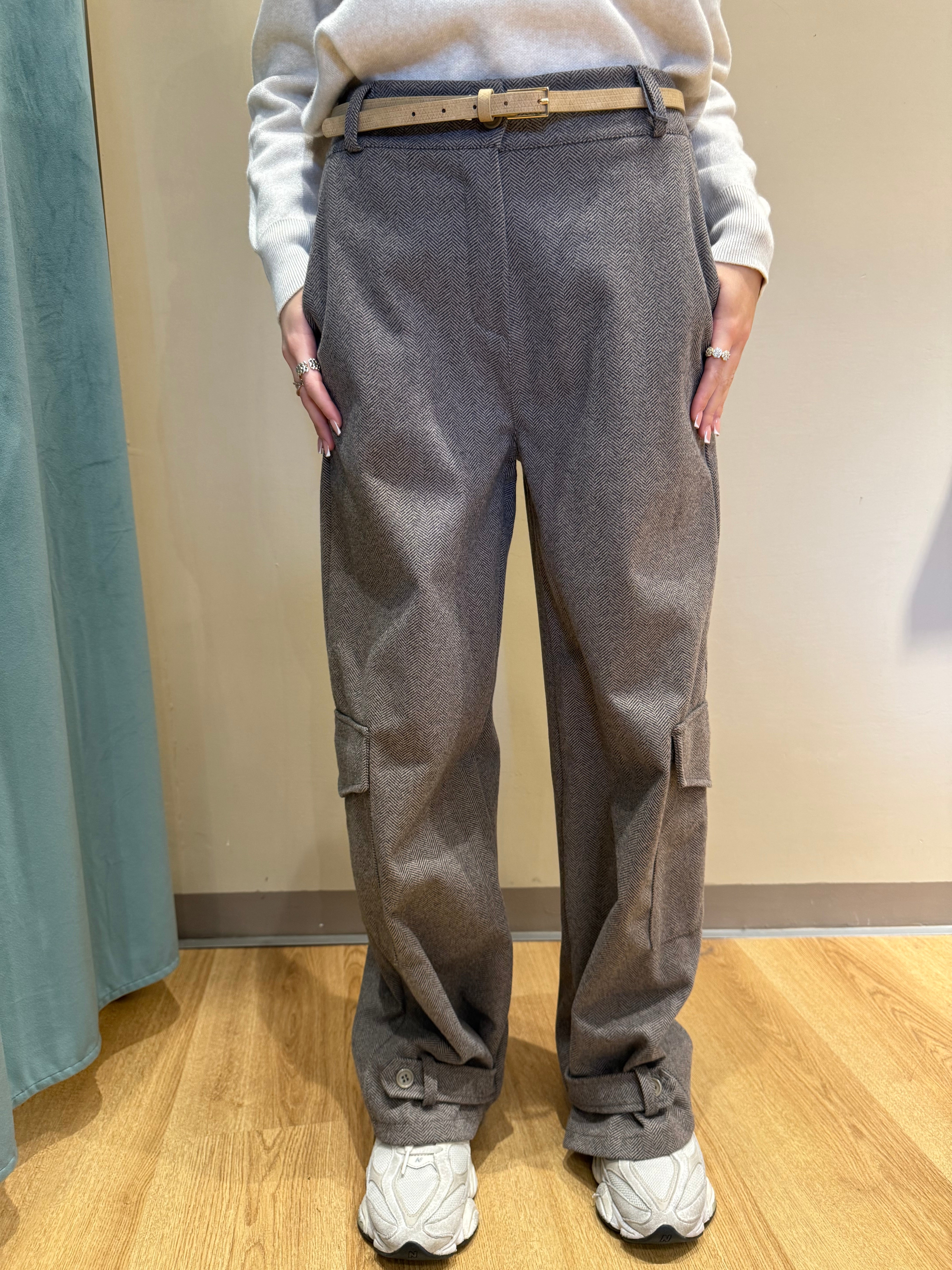 Pantalone cargo dal taglio classico e pulito, reinterpretato in chiave elegante.