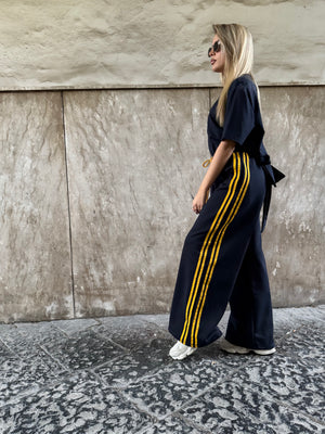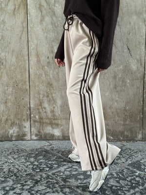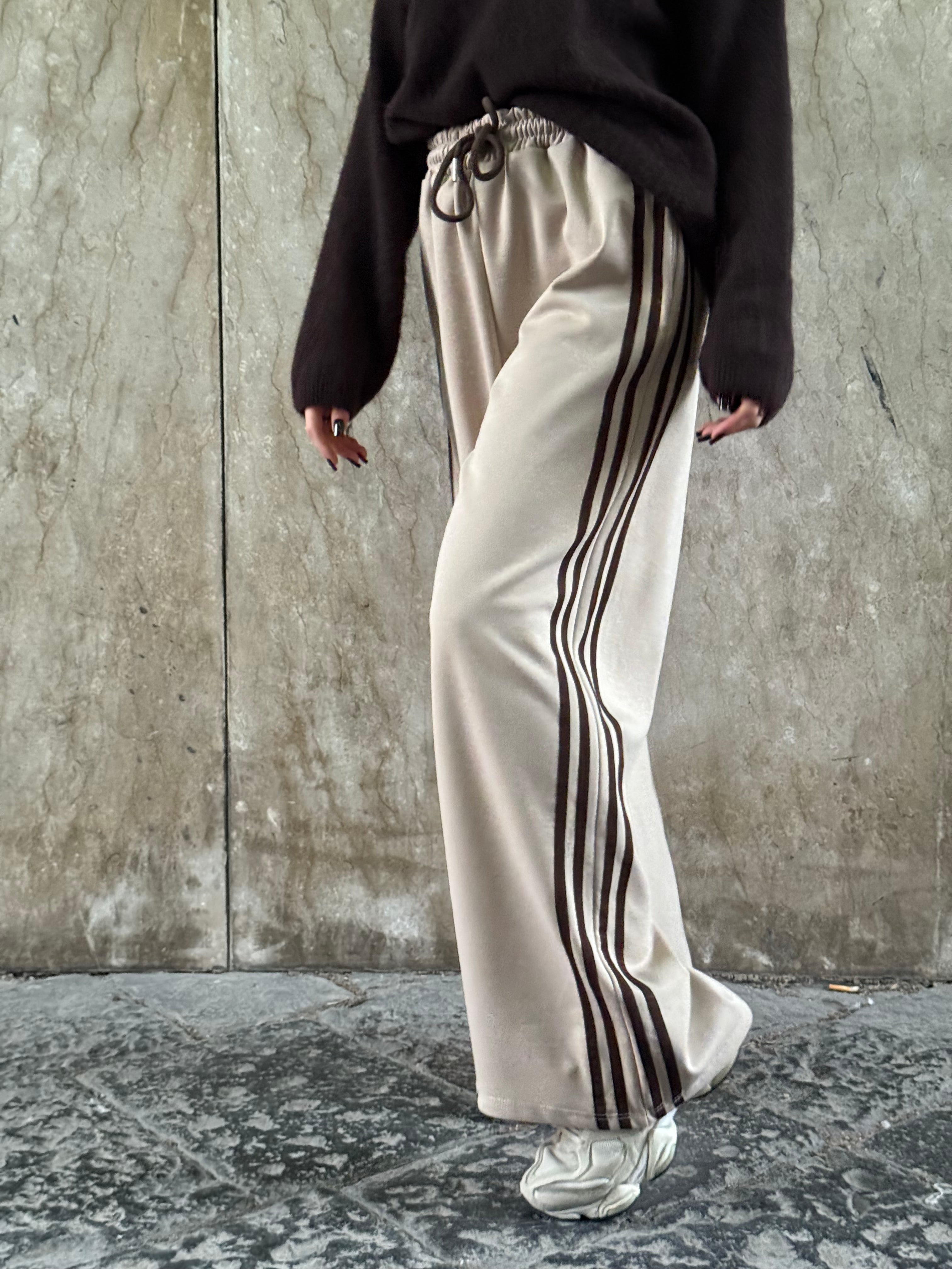 Le strisce laterali a contrasto, ispirate al classico modello adidas, slanciano la figura e aggiungono un tocco urban e contemporaneo.
