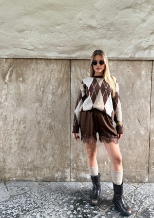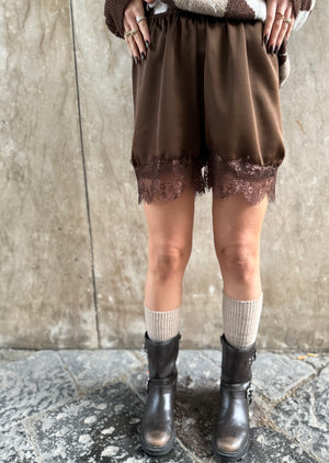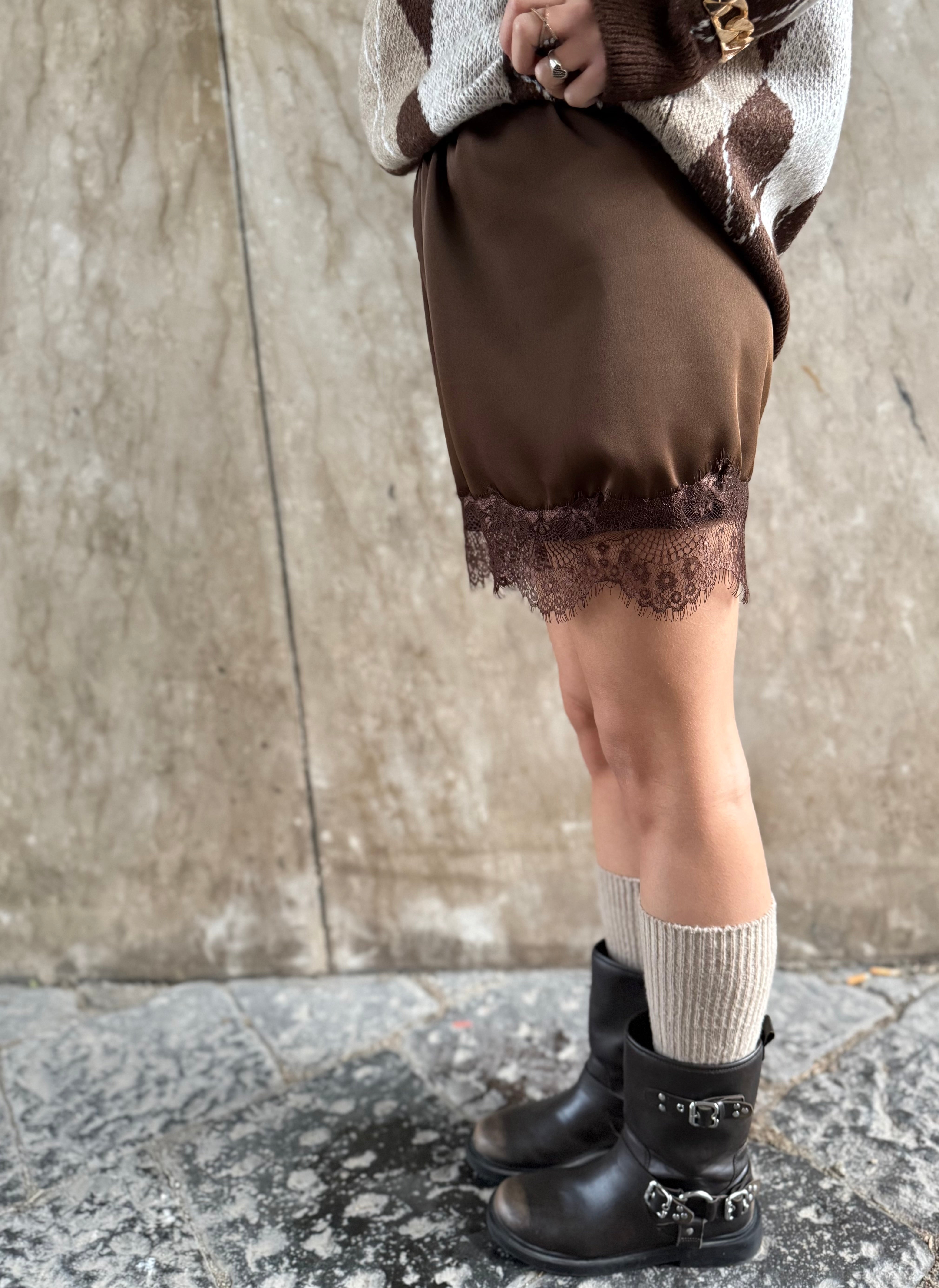 ✨ Il pantaloncino in raso con bordo in pizzo che aggiunge quel tocco femminile e sofisticato anche nella stagione invernale.