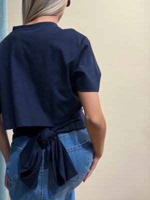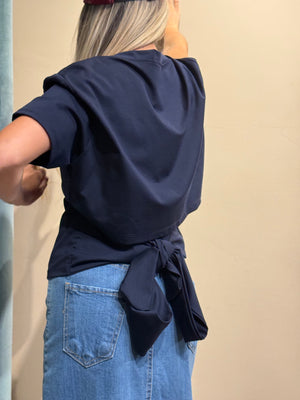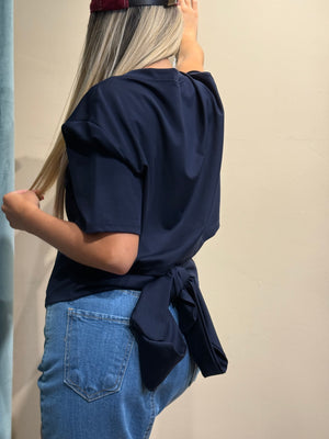 Realizzata in una classica maglietta con un nodo decorativo nella parte posteriore, questa t-shirt è perfetta per vestibilità fino alla taglia 48.