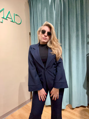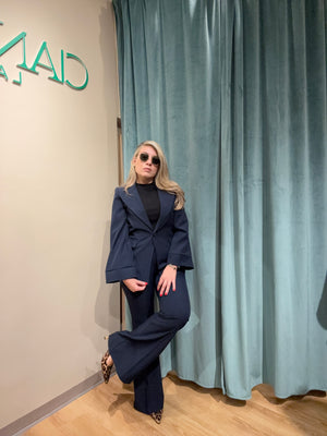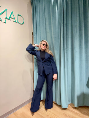 Il pantalone a zampa e la giacca monopetto danno un tocco vintage alla tua eleganza.